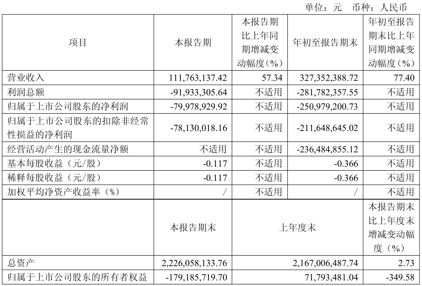 中证智能财讯 *ST宁科(600165)10月31日披露2025年第三季度报告。前三季度公司实现营业总收入3.27亿元,同比增长77.40%;归母净利润亏损2.51亿元,上年同期亏损4.8亿元;扣非净利润亏损2.12亿元,上年同期亏损4.57亿元;经营活动产生的现金流量净额为-2.36亿元,上年同期为-595.83万元;报告期内,*ST宁科基本每股收益为-0.366元。