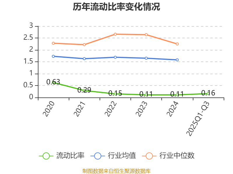 2025年前三季度,公司流动比率为0.16,速动比率为0.1。