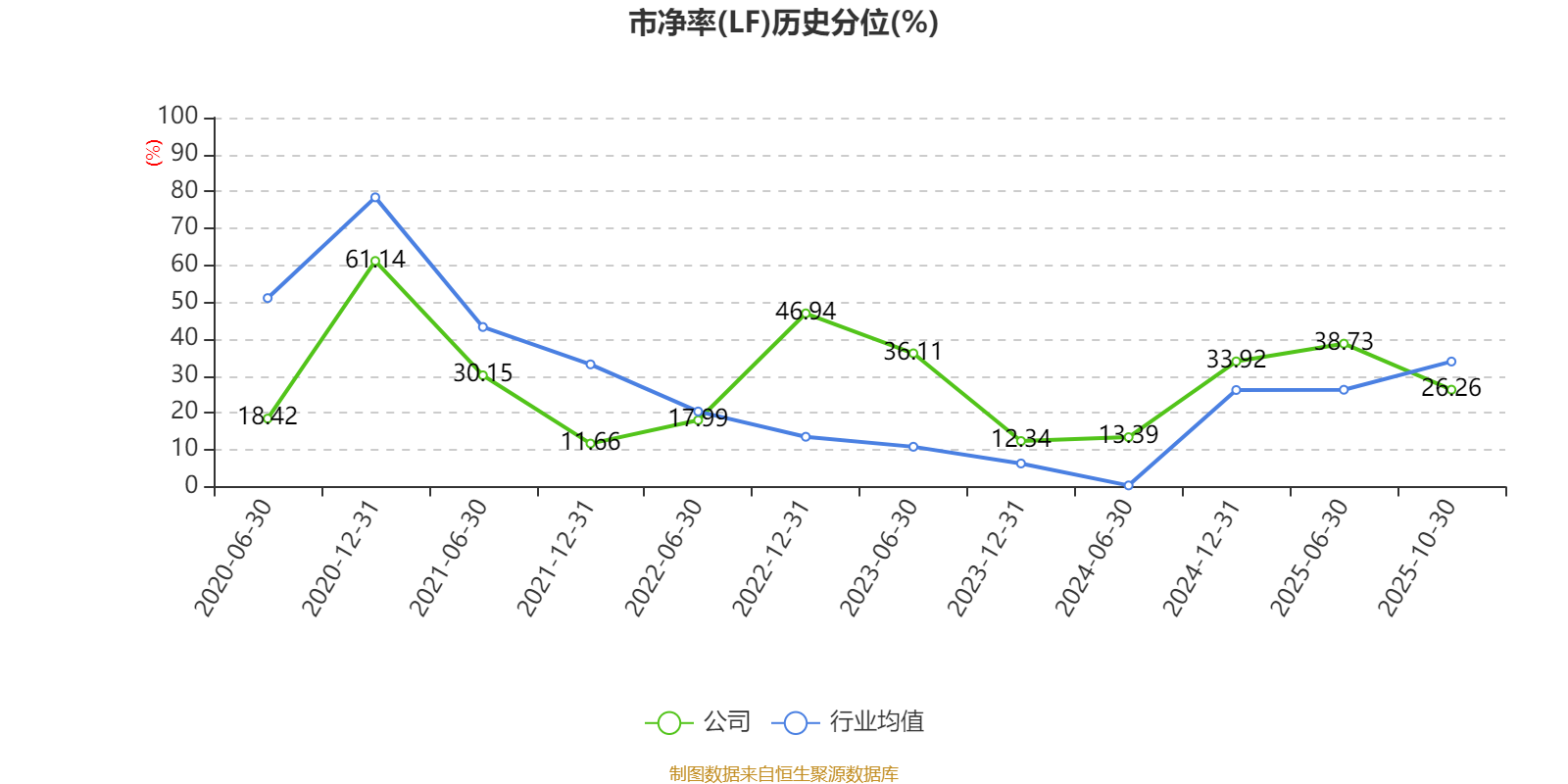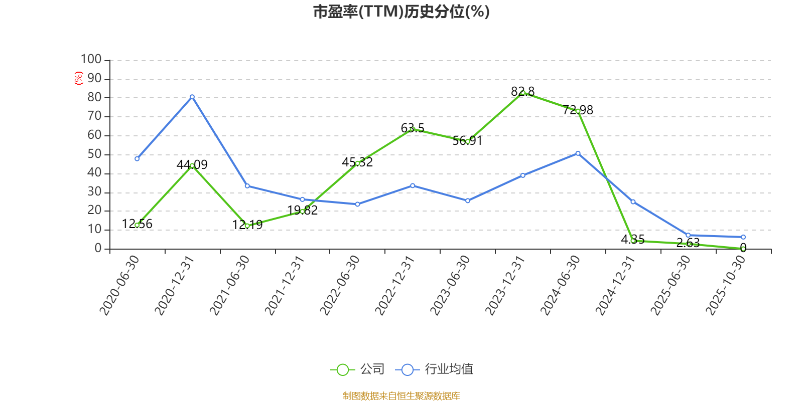 市盈率、市净率为负时,不显示当期分位数,会导致折线图中断。