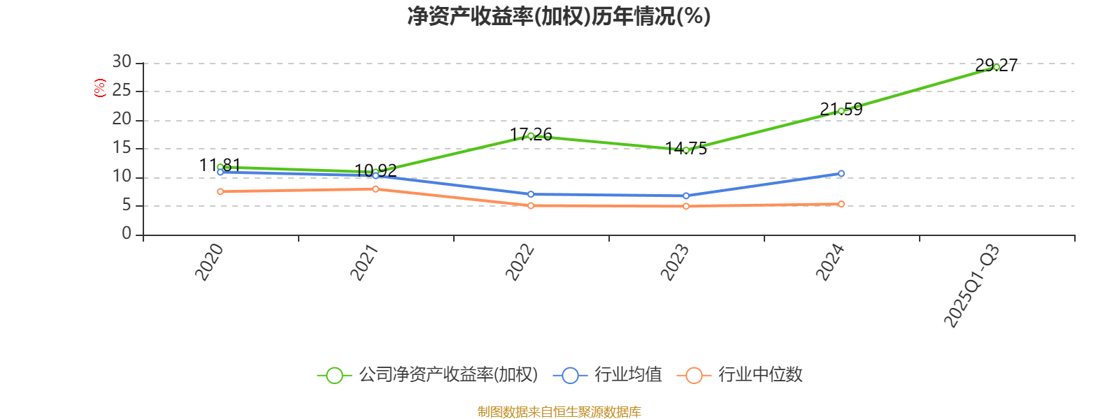 盈利能力方面, 2025年前三季度公司加权平均净资产收益率为29.27%,同比上升9.32个百分点。