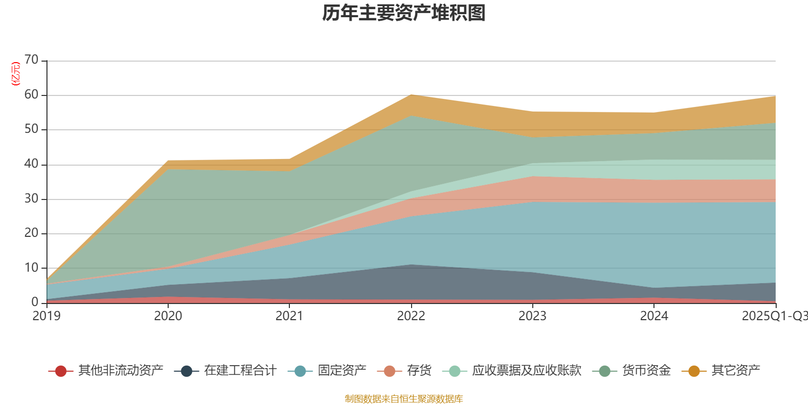 资产重大变化方面,截至2025年三季度末,公司固定资产较上年末减少5.46%,占公司总资产比重下降5.82个百分点;货币资金较上年末增加40.37%,占公司总资产比重上升4.04个百分点;在建工程合计较上年末增加89.06%,占公司总资产比重上升3.81个百分点;其他非流动资产较上年末减少65.95%,占公司总资产比重下降1.93个百分点。