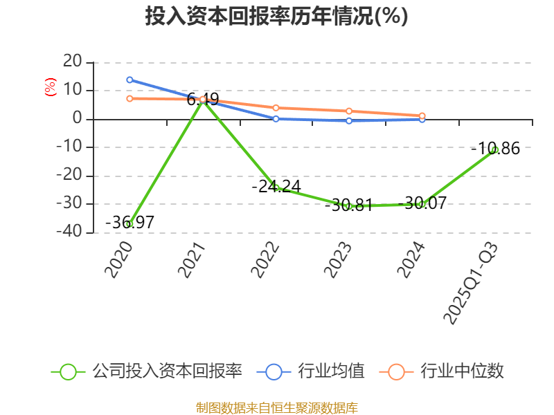 盈利能力方面, 2025年前三季度公司加权平均净资产收益率为-26.7%,同比上升10.22个百分点。公司2025年前三季度投入资本回报率为-10.86%,较上年同期上升10.48个百分点。