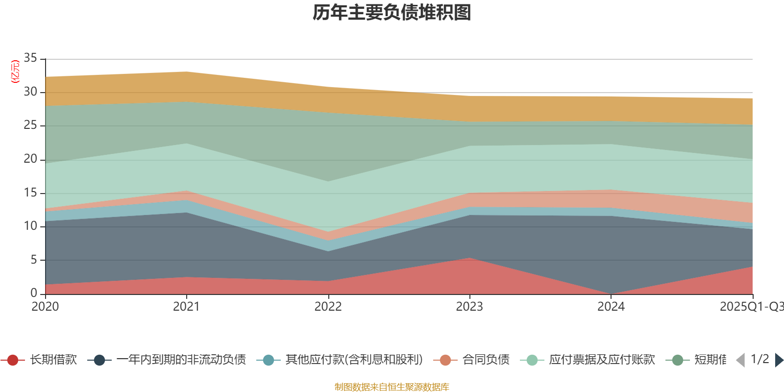 负债重大变化方面,截至2025年三季度末,公司一年内到期的非流动负债较上年末减少52.07%,占公司总资产比重下降13.93个百分点;长期借款占公司总资产的9.31%,上年末为0;短期借款较上年末增加48.73%,占公司总资产比重上升3.81个百分点;应付票据及应付账款较上年末减少4.26%,占公司总资产比重下降0.73个百分点。
