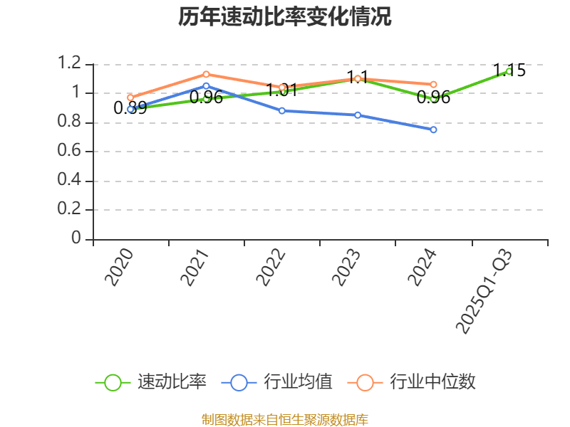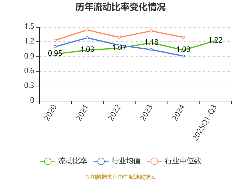 2025年前三季度,公司流动比率为1.22,速动比率为1.15。