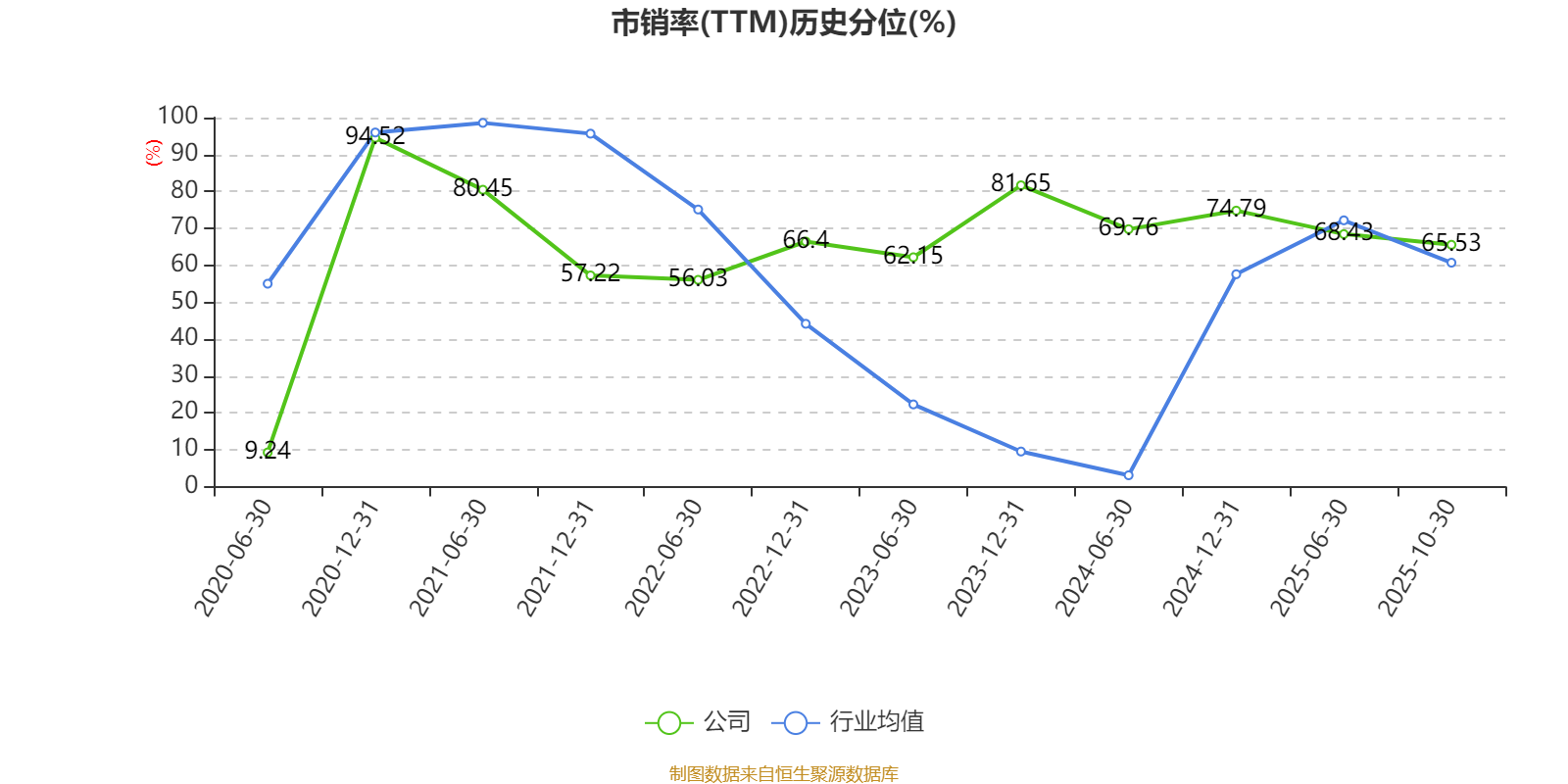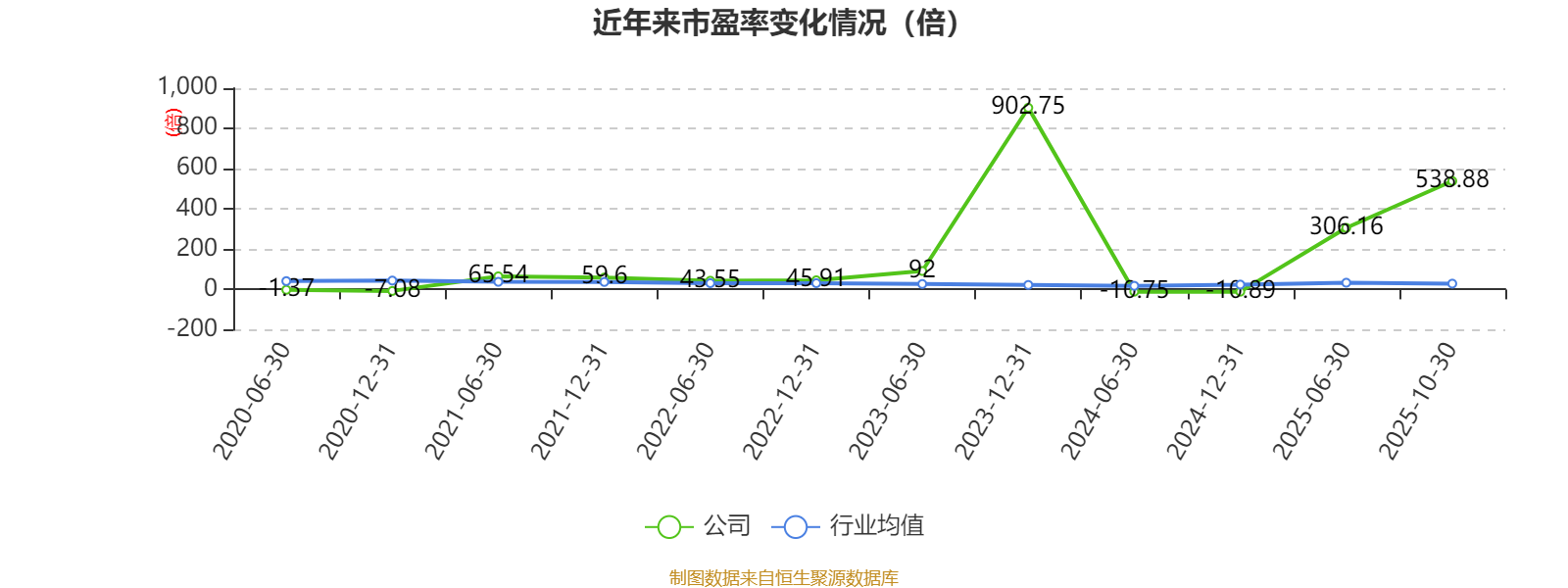 以10月30日收盘价计算,泉阳泉目前市盈率(TTM)约为538.88倍,市净率(LF)约4.1倍,市销率(TTM)约3.83倍。