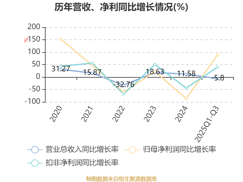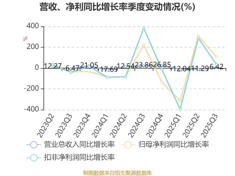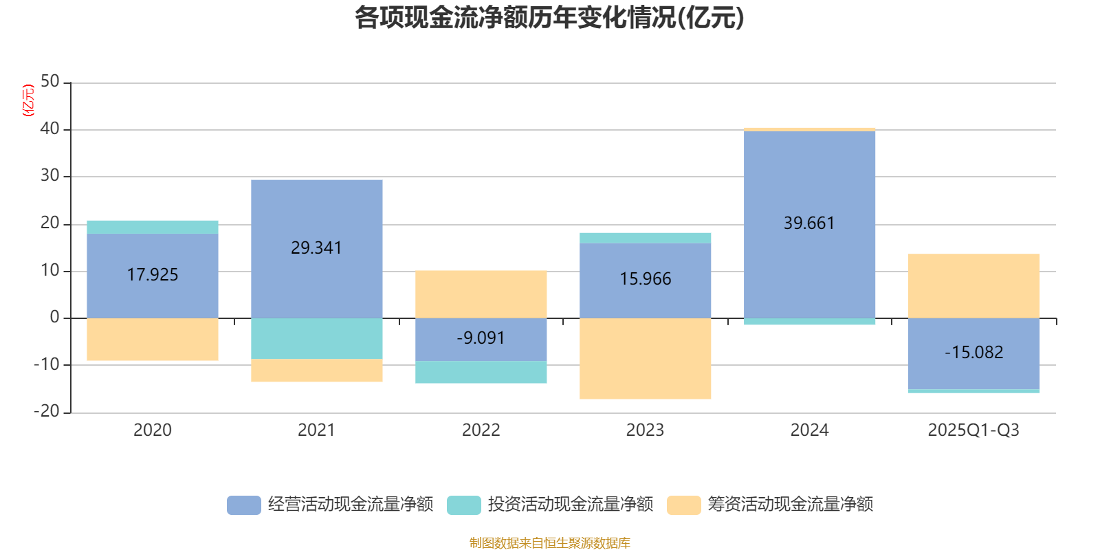 2025年前三季度,公司经营活动现金流净额为-15.08亿元,同比减少33.95亿元;筹资活动现金流净额13.66亿元,同比增加16.31亿元;投资活动现金流净额-7950.65万元,上年同期为1.73亿元。