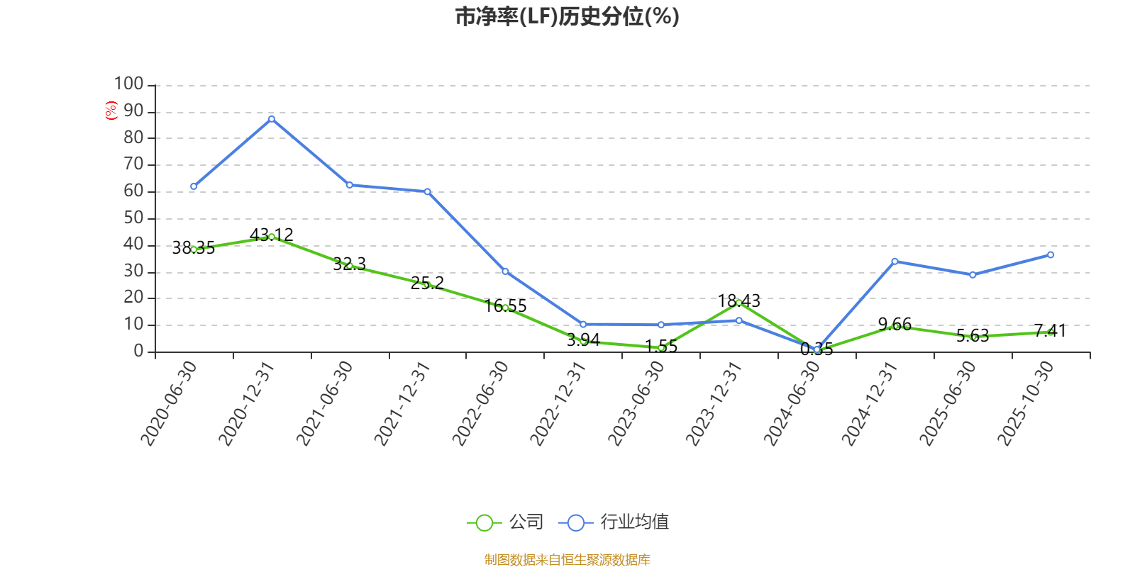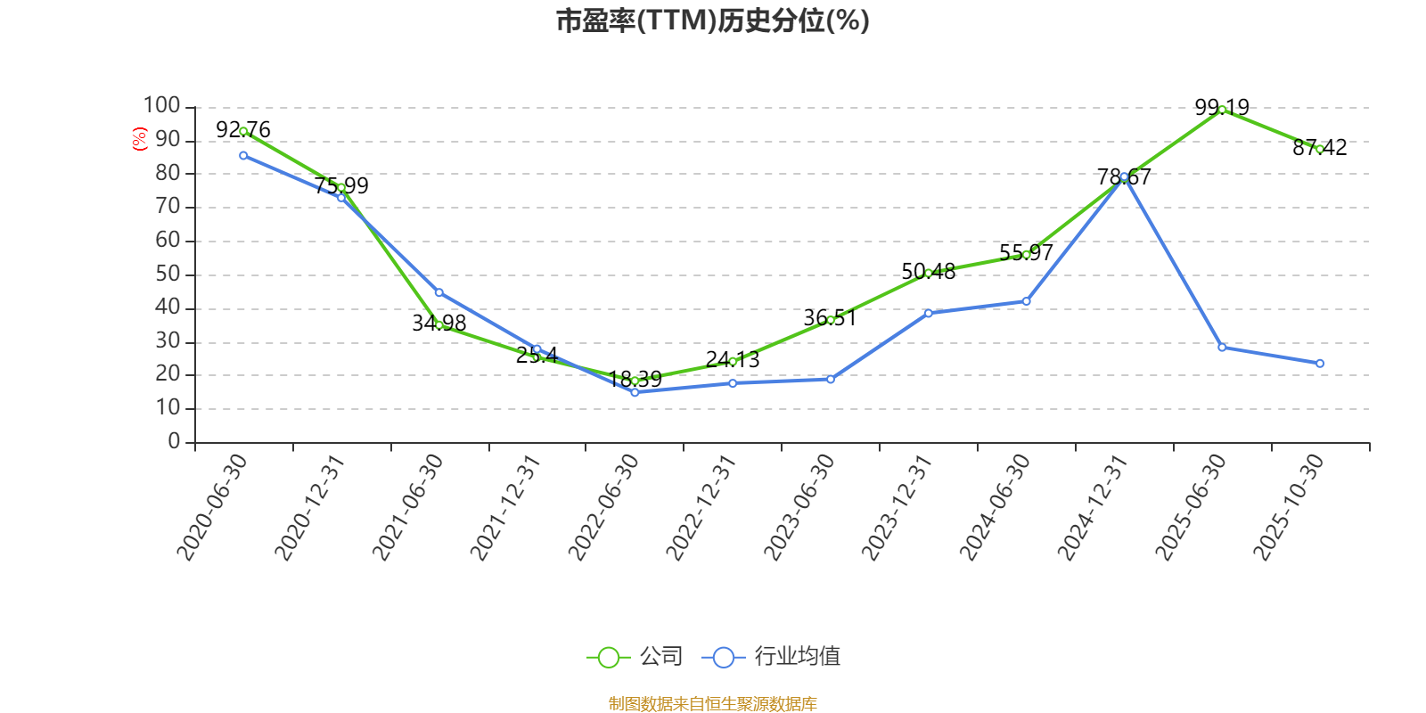 市盈率、市净率为负时,不显示当期分位数,会导致折线图中断。