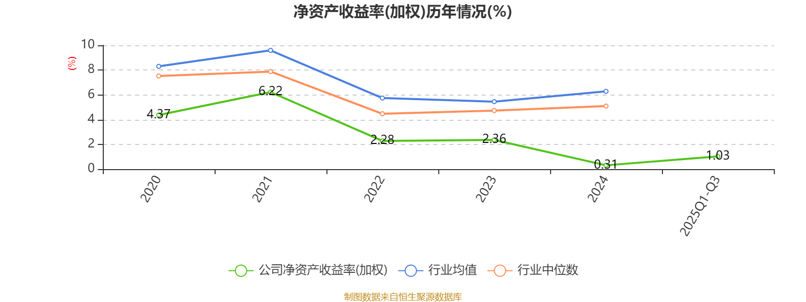盈利能力方面, 2025年前三季度公司加权平均净资产收益率为1.03%,同比上升0.49个百分点。