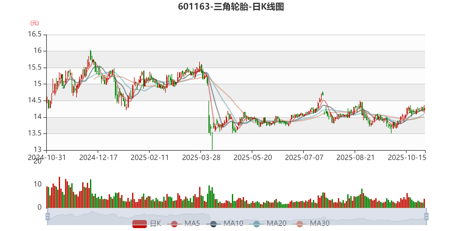 以10月30日收盘价计算,三角轮胎目前市盈率(TTM)约为12.66倍,市净率(LF)约0.83倍,市销率(TTM)约1.16倍。