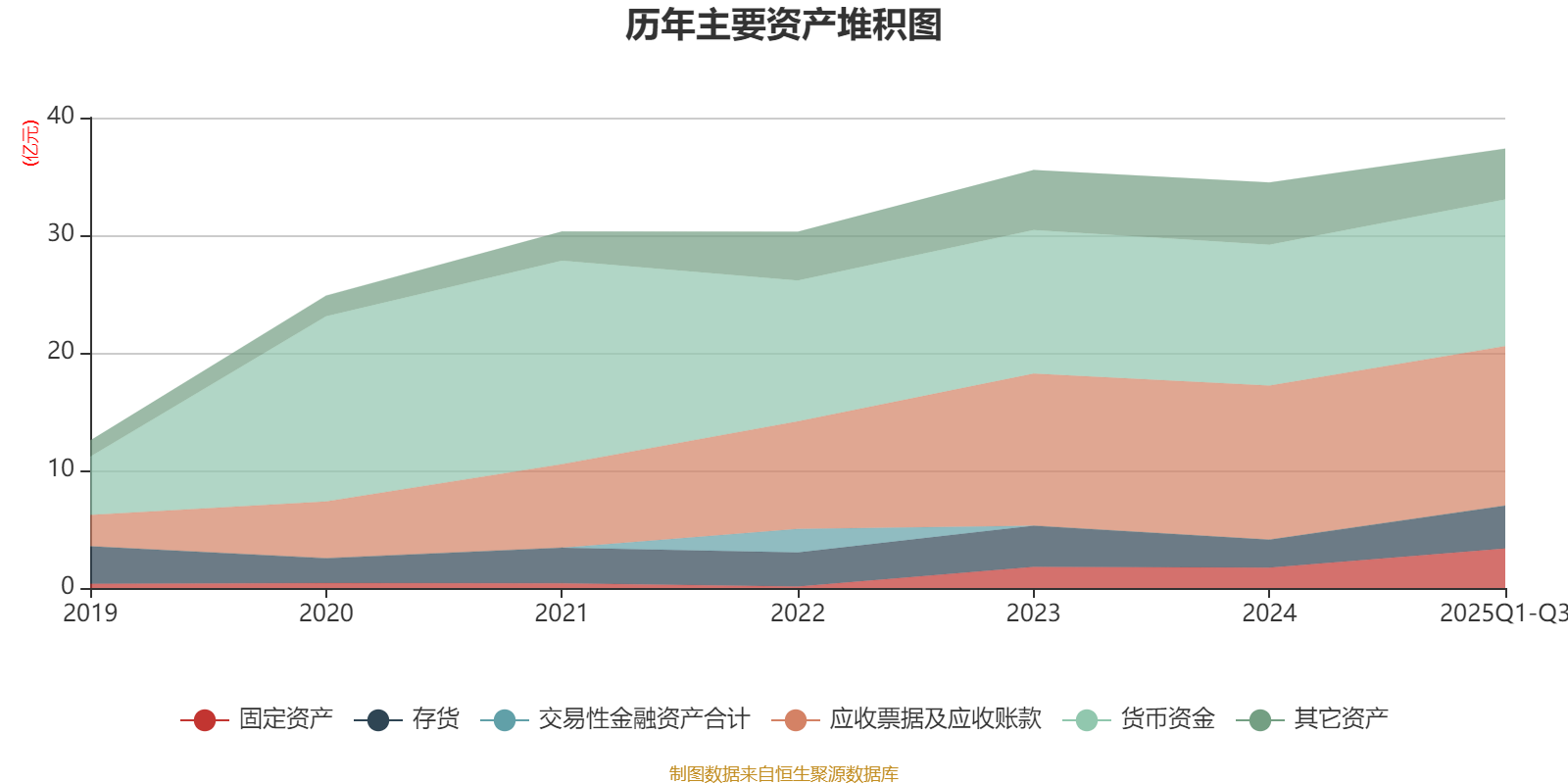 资产重大变化方面,截至2025年三季度末,公司固定资产较上年末增加94.31%,占公司总资产比重上升3.98个百分点;在建工程合计较上年末减少100%,占公司总资产比重下降3.26个百分点;存货较上年末增加53.67%,占公司总资产比重上升2.87个百分点;应收票据及应收账款较上年末增加3.57%,占公司总资产比重下降1.68个百分点。