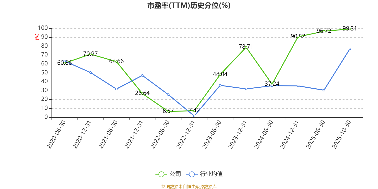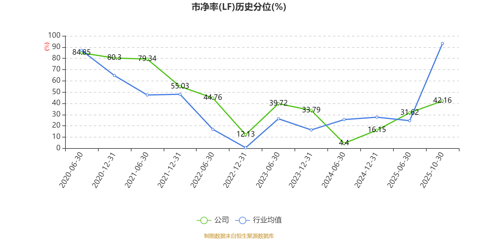市盈率、市净率为负时,不显示当期分位数,会导致折线图中断。
