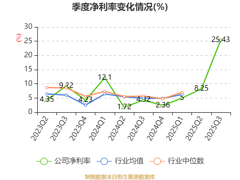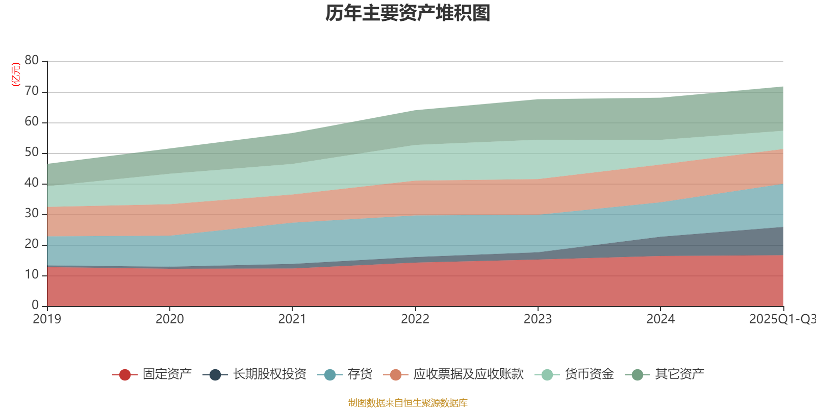 资产重大变化方面,截至2025年三季度末,公司长期股权投资较上年末增加46.72%,占公司总资产比重上升3.63个百分点;货币资金较上年末减少26.32%,占公司总资产比重下降3.57个百分点;存货较上年末增加25.14%,占公司总资产比重上升3.1个百分点;应收票据及应收账款较上年末减少7.88%,占公司总资产比重下降2.28个百分点。