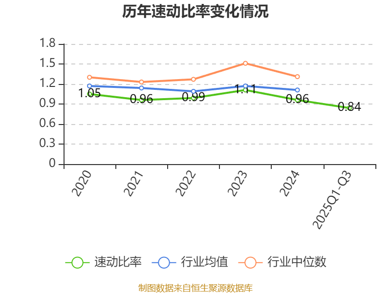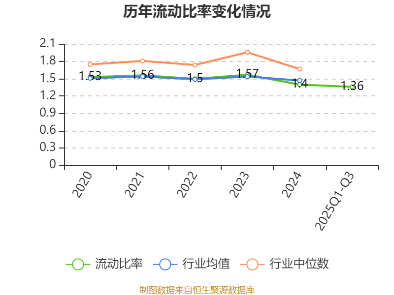2025年前三季度,公司流动比率为1.36,速动比率为0.84。