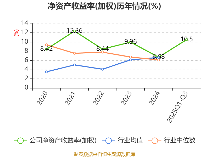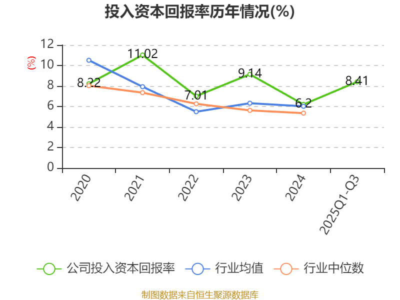 盈利能力方面, 2025年前三季度公司加权平均净资产收益率为10.5%,同比上升4.56个百分点。公司2025年前三季度投入资本回报率为8.41%,较上年同期上升2.97个百分点。