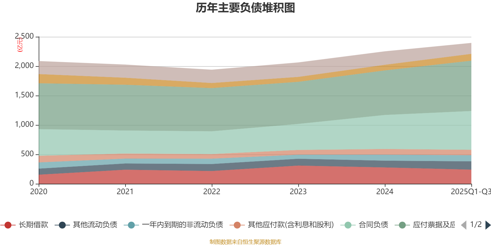 负债重大变化方面,截至2025年三季度末,公司应付票据及应付账款较上年末增加12.96%,占公司总资产比重上升1.82个百分点;长期借款较上年末减少13.5%,占公司总资产比重下降1.63个百分点;合同负债较上年末增加13.91%,占公司总资产比重上升1.56个百分点;吸收存款及同业存款较上年末减少40.7%,占公司总资产比重下降1.06个百分点。