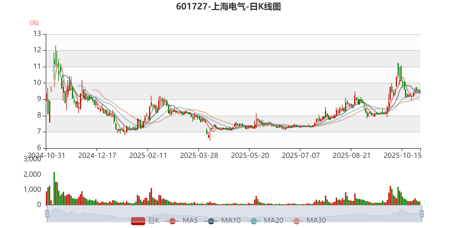 以10月30日收盘价计算,上海电气目前市盈率(TTM)约为174.6倍,市净率(LF)约2.7倍,市销率(TTM)约1.2倍。