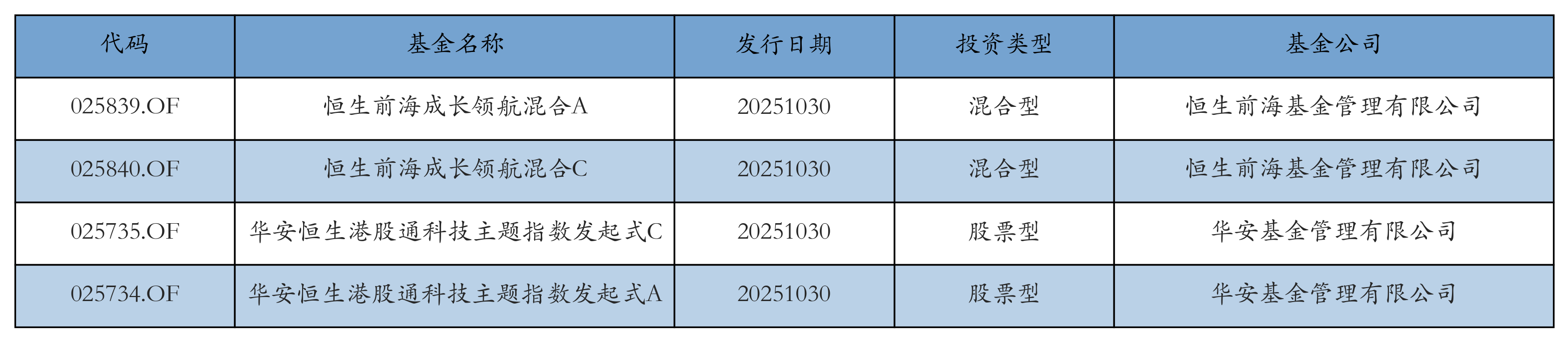 昨日有4只新基金发行,分别为:恒生前海成长领航混合A、恒生前海成长领航混合C、华安恒生港股通科技主题指数发起式C、华安恒生港股通科技主题指数发起式A,详情见下表: