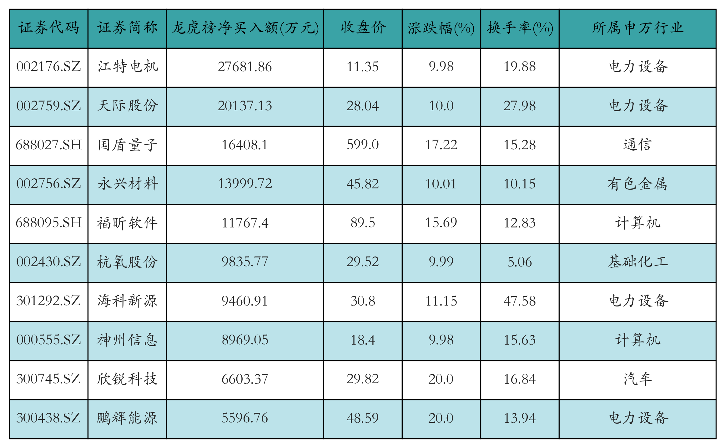 昨日龙虎榜营业部净买入额前10详情见下表: