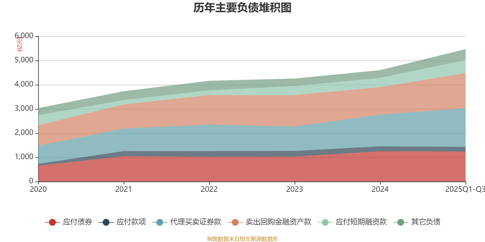 负债重大变化方面,截至2025年三季度末,公司应付债券较上年末减少0.86%,占公司总资产比重下降3.37个百分点;卖出回购金融资产款较上年末增加27.24%,占公司总资产比重上升1.76个百分点;应付短期融资款较上年末增加41.64%,占公司总资产比重上升1.43个百分点;代理买卖证券款较上年末增加22.32%,占公司总资产比重上升1.05个百分点。