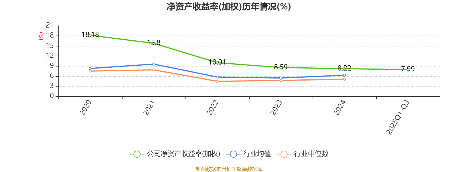 盈利能力方面, 2025年前三季度公司加权平均净资产收益率为7.99%,同比上升3.28个百分点。