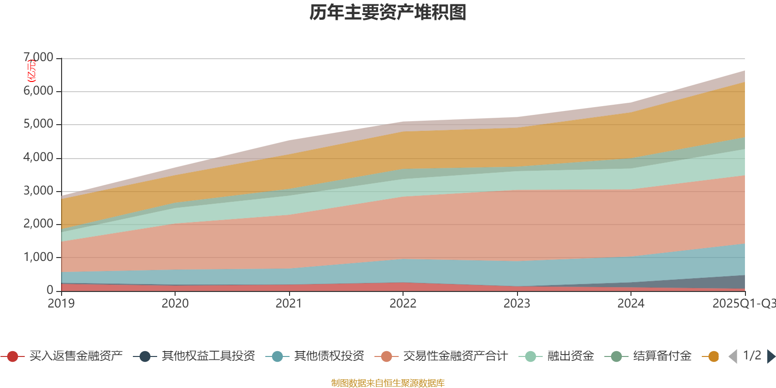 资产重大变化方面,截至2025年三季度末,公司交易性金融资产合计较上年末增加1.65%,占公司总资产比重下降4.68个百分点;其他权益工具投资较上年末增加174.75%,占公司总资产比重上升3.53个百分点;买入返售金融资产较上年末减少37.69%,占公司总资产比重下降0.92个百分点;融出资金较上年末增加24.98%,占公司总资产比重上升0.76个百分点。