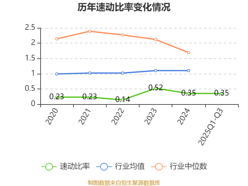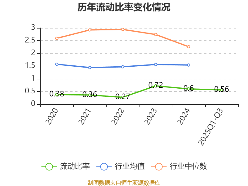 2025年前三季度,公司流动比率为0.56,速动比率为0.35。