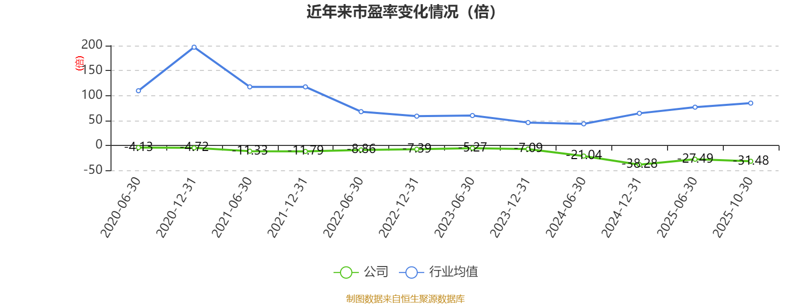 以10月30日收盘价计算,*ST炼石目前市盈率(TTM)约为-31.48倍,市净率(LF)约-217.27倍,市销率(TTM)约3.95倍。