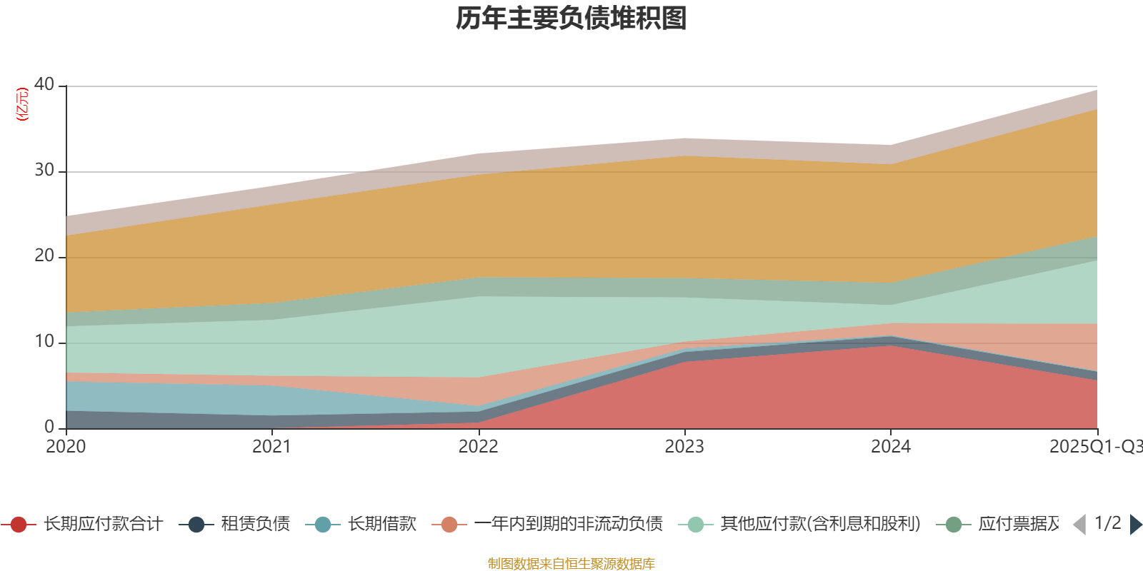 负债重大变化方面,截至2025年三季度末,公司长期应付款合计较上年末减少42.21%,占公司总资产比重下降14.2个百分点;其他应付款(含利息和股利)较上年末增加248.76%,占公司总资产比重上升12.59个百分点;一年内到期的非流动负债较上年末增加290.79%,占公司总资产比重上升9.91个百分点;短期借款较上年末增加7.2%,占公司总资产比重下降2.91个百分点。
