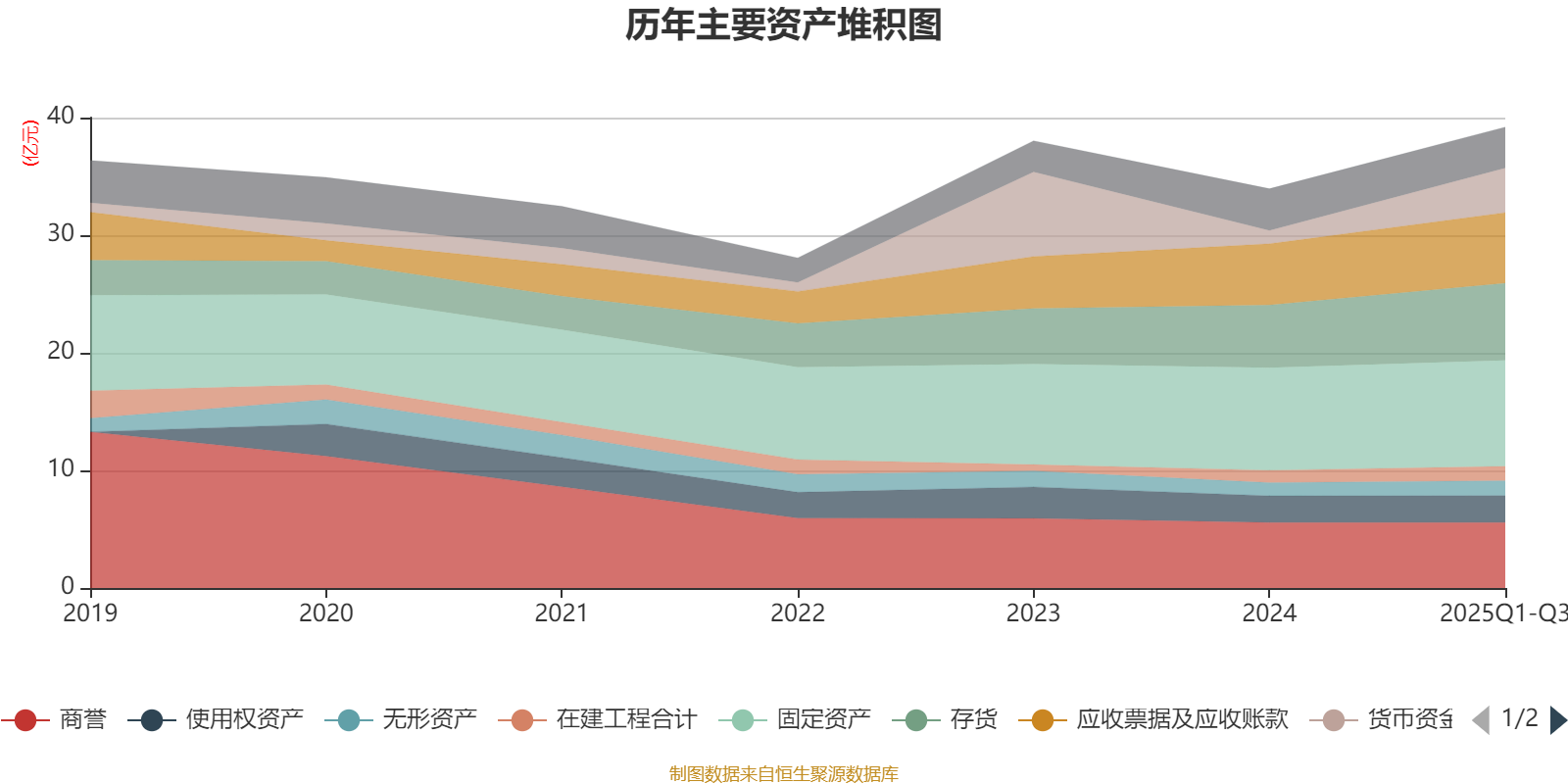 资产重大变化方面,截至2025年三季度末,公司货币资金较上年末增加233.95%,占公司总资产比重上升6.32个百分点;固定资产较上年末增加3.23%,占公司总资产比重下降2.72个百分点;商誉较上年末增加0.1%,占公司总资产比重下降2.18个百分点;存货较上年末增加23.5%,占公司总资产比重上升1.09个百分点。
