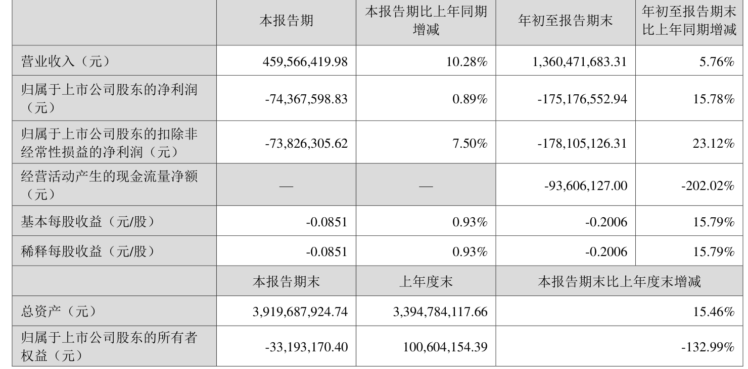 中证智能财讯 *ST炼石(000697)10月31日披露2025年第三季度报告。前三季度公司实现营业总收入13.6亿元,同比增长5.76%;归母净利润亏损1.75亿元,上年同期亏损2.08亿元;扣非净利润亏损1.78亿元,上年同期亏损2.32亿元;经营活动产生的现金流量净额为-9360.61万元,上年同期为9175.22万元;报告期内,*ST炼石基本每股收益为-0.2006元。