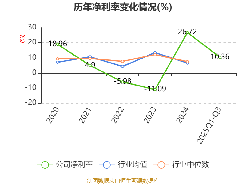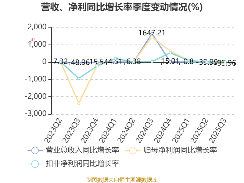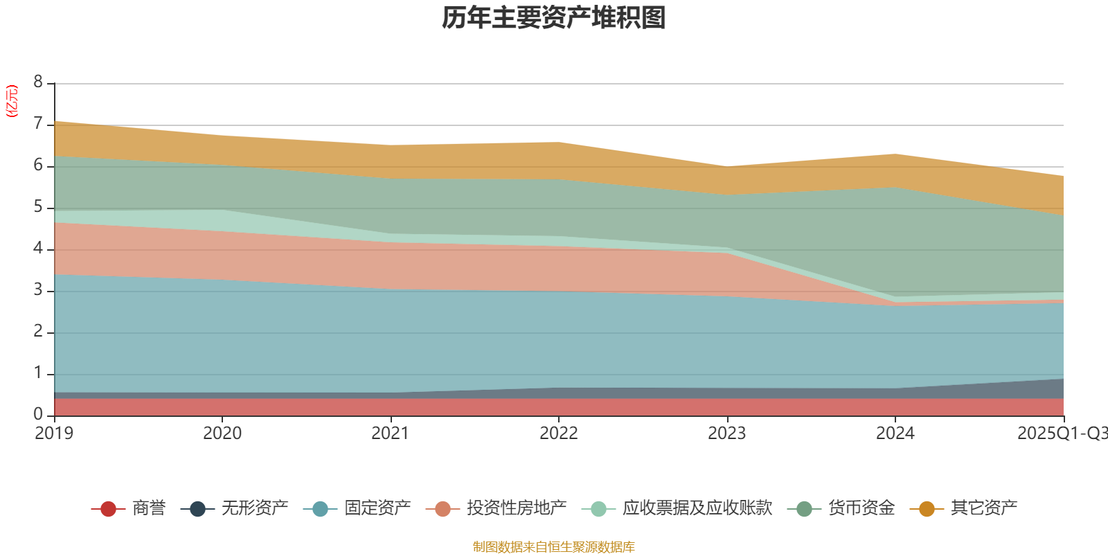 资产重大变化方面,截至2025年三季度末,公司货币资金较上年末减少30.02%,占公司总资产比重下降9.85个百分点;交易性金融资产合计占公司总资产的4.34%,上年末为0;无形资产较上年末增加90.24%,占公司总资产比重上升4.32个百分点;应收票据及应收账款较上年末增加35.13%,占公司总资产比重上升1.01个百分点。