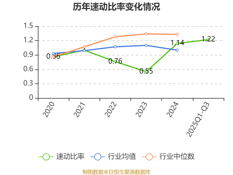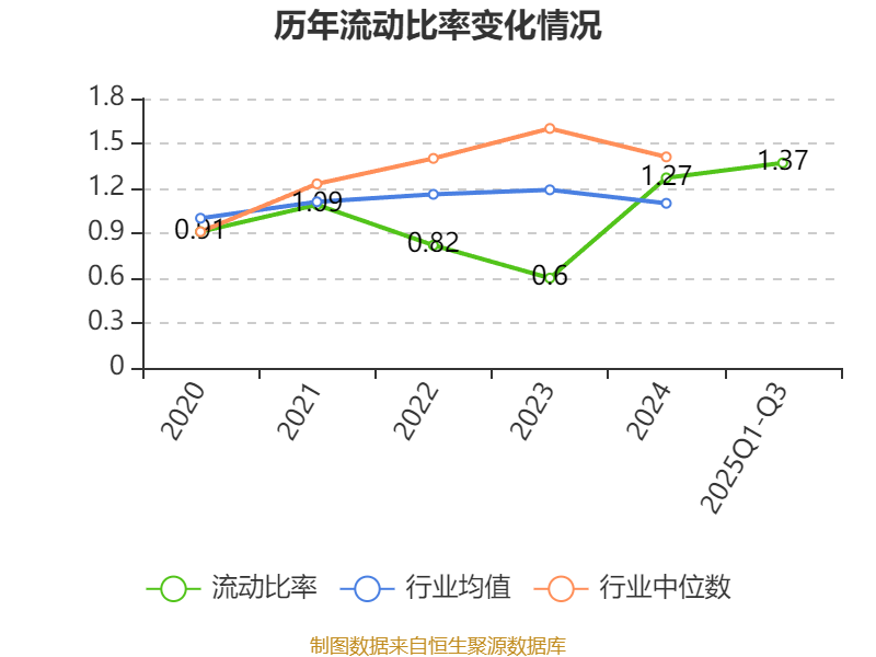 2025年前三季度,公司流动比率为1.37,速动比率为1.22。