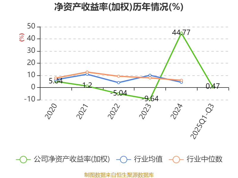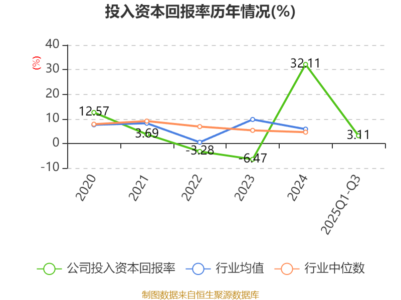 盈利能力方面, 2025年前三季度公司加权平均净资产收益率为0.47%,同比下降37.91个百分点。公司2025年前三季度投入资本回报率为3.11%,较上年同期下降21.54个百分点。
