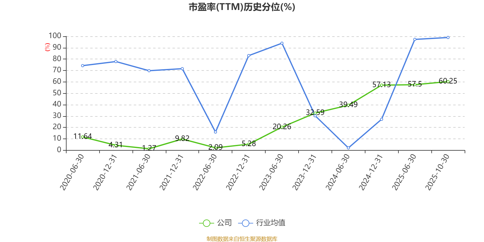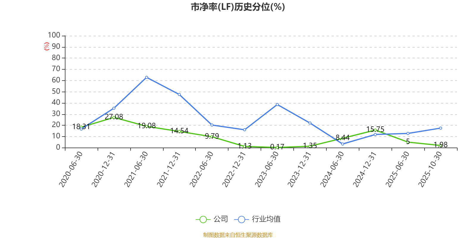 市盈率、市净率为负时,不显示当期分位数,会导致折线图中断。
