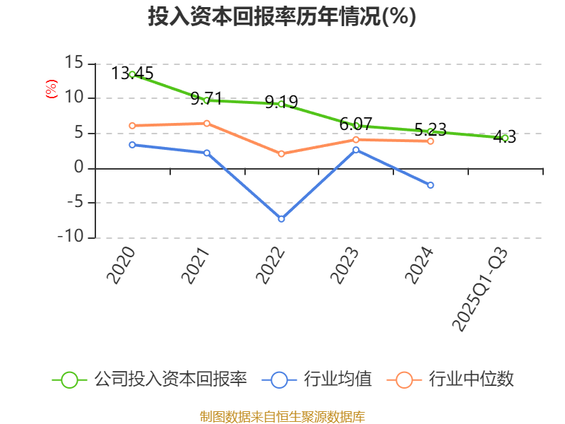 盈利能力方面, 2025年前三季度公司加权平均净资产收益率为5.58%,同比下降0.66个百分点。公司2025年前三季度投入资本回报率为4.3%,较上年同期下降0.4个百分点。
