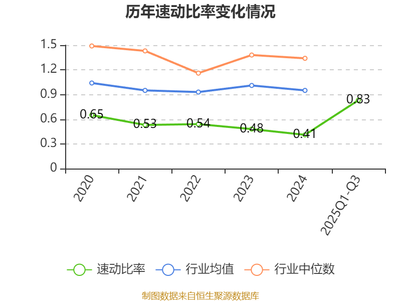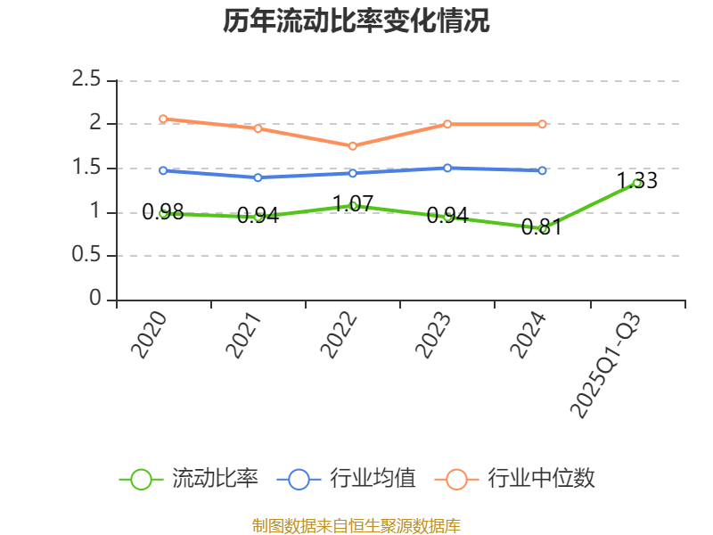 2025年前三季度,公司流动比率为1.33,速动比率为0.83。