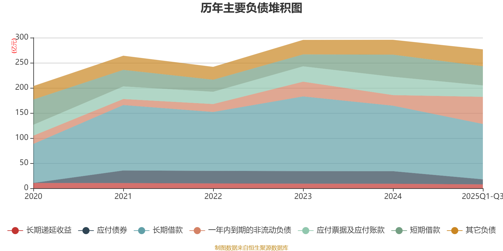 负债重大变化方面,截至2025年三季度末,公司一年内到期的非流动负债较上年末增加156.44%,占公司总资产比重上升6.74个百分点;长期借款较上年末减少15.47%,占公司总资产比重下降4.81个百分点;应付债券较上年末减少60%,占公司总资产比重下降3.23个百分点;应付票据及应付账款较上年末减少37.61%,占公司总资产比重下降3.03个百分点。