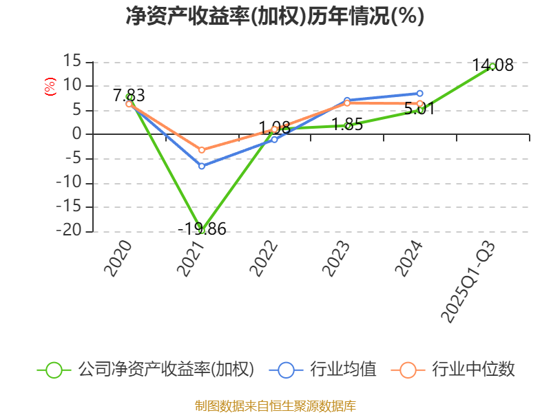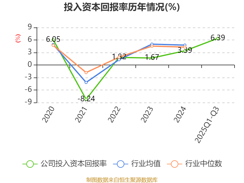 盈利能力方面, 2025年前三季度公司加权平均净资产收益率为14.08%,同比上升9.58个百分点。公司2025年前三季度投入资本回报率为6.39%,较上年同期上升3.85个百分点。