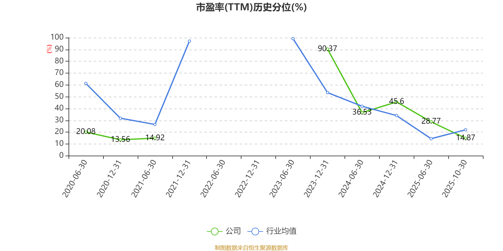 市盈率、市净率为负时,不显示当期分位数,会导致折线图中断。