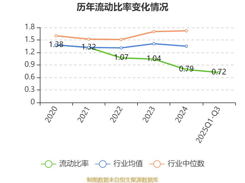2025年前三季度,公司流动比率为0.72,速动比率为0.26。