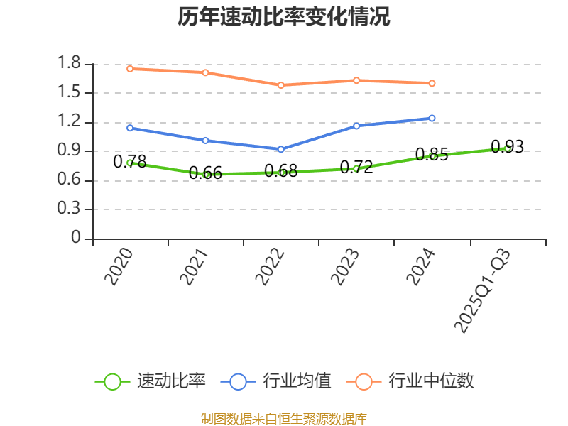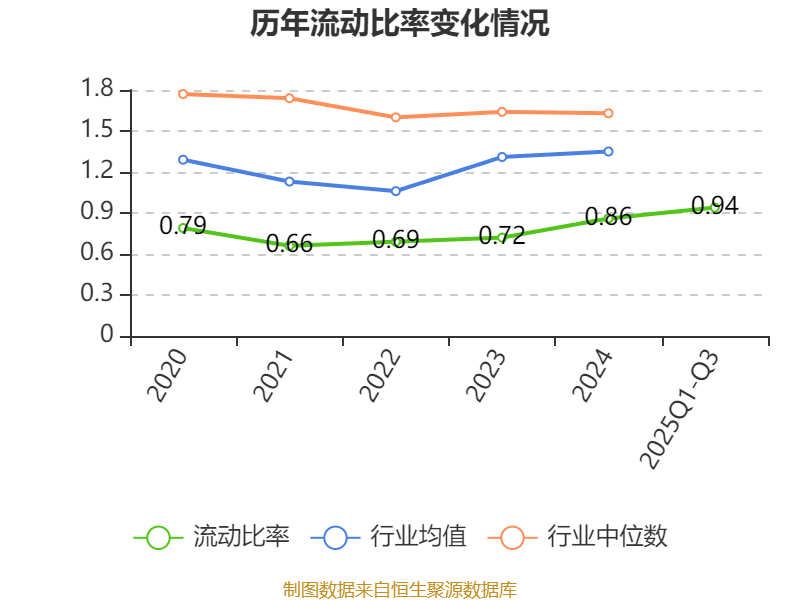 2025年前三季度,公司流动比率为0.94,速动比率为0.93。