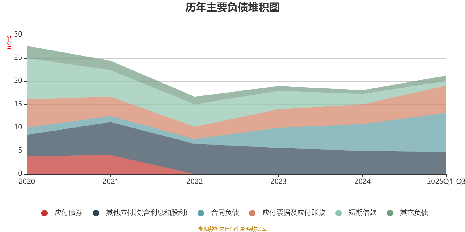 负债重大变化方面,截至2025年三季度末,公司合同负债较上年末增加46.15%,占公司总资产比重上升6.12个百分点;短期借款较上年末减少56.1%,占公司总资产比重下降5.6个百分点;其他应付款(含利息和股利)较上年末减少5.05%,占公司总资产比重下降3.61个百分点;应付票据及应付账款较上年末增加37.81%,占公司总资产比重上升3.26个百分点。