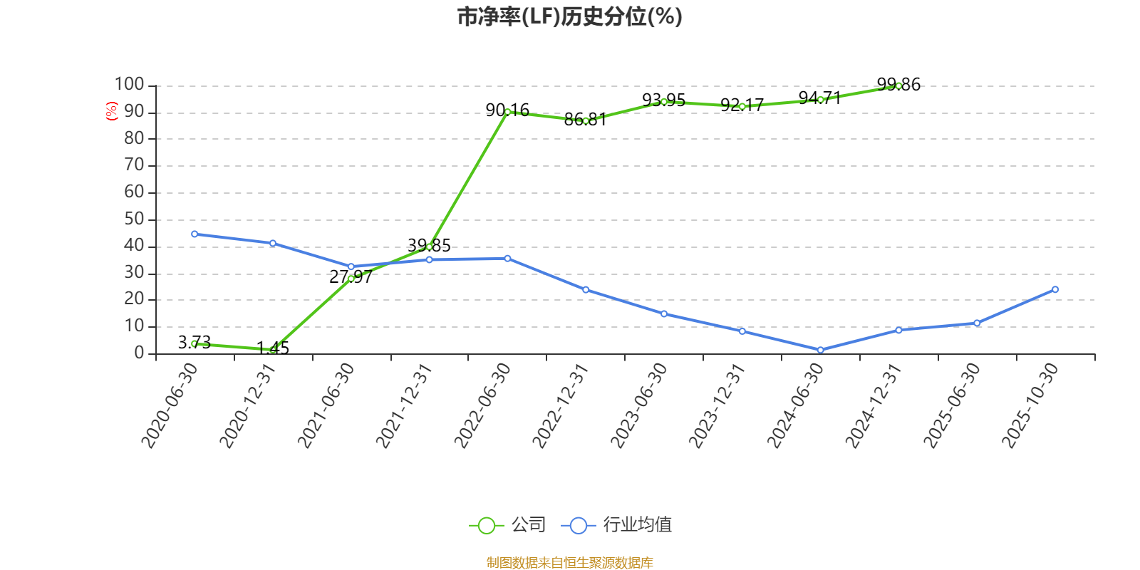 市盈率、市净率为负时,不显示当期分位数,会导致折线图中断。