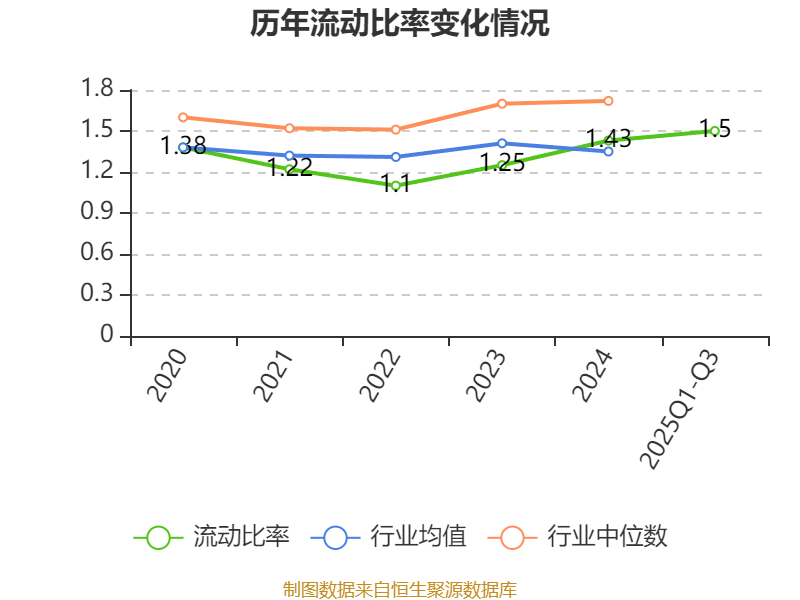 2025年前三季度,公司流动比率为1.5,速动比率为0.33。