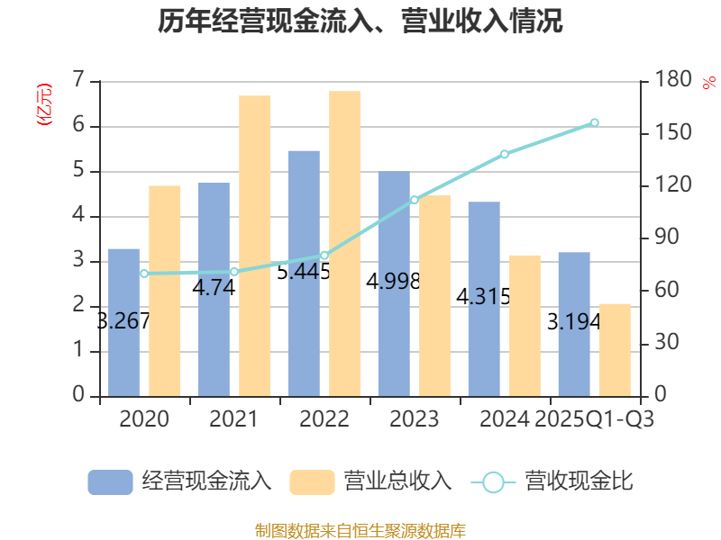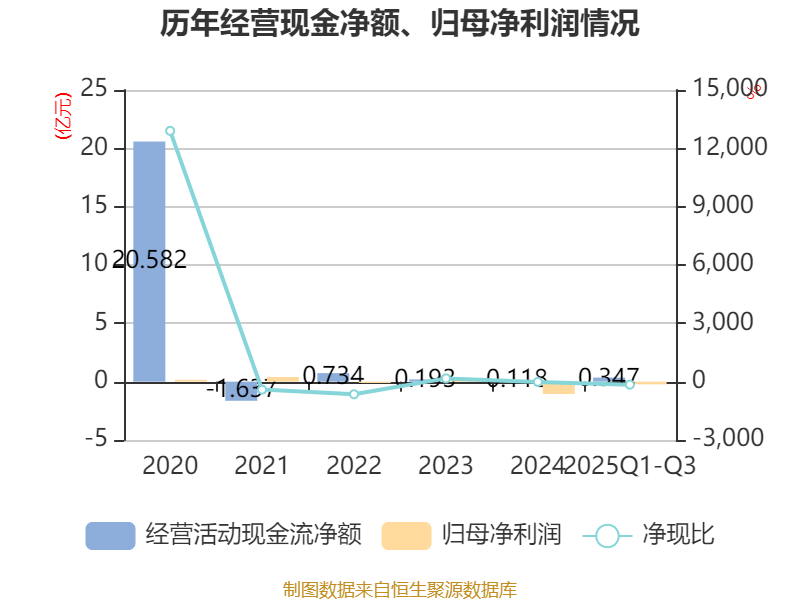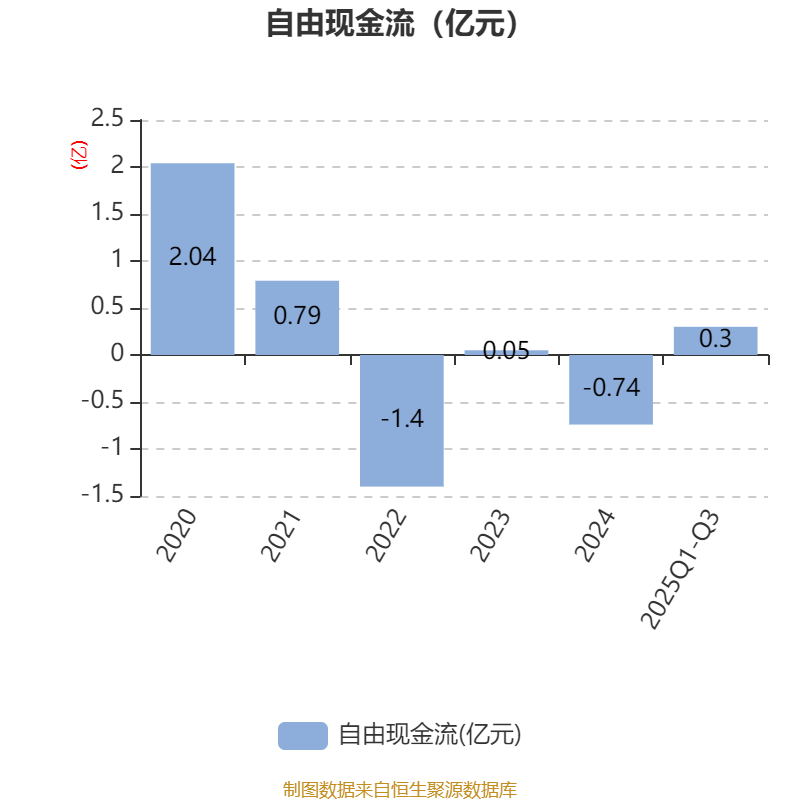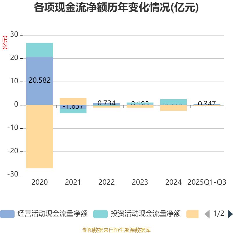 2025年前三季度,公司经营活动现金流净额为3466.07万元,同比增长25.76%;筹资活动现金流净额-4500.42万元,同比增加2.07亿元;投资活动现金流净额1351.52万元,上年同期为2.31亿元。