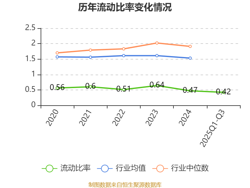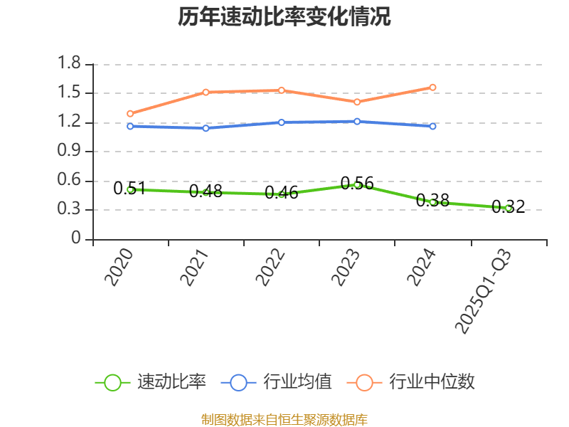 2025年前三季度,公司流动比率为0.42,速动比率为0.32。