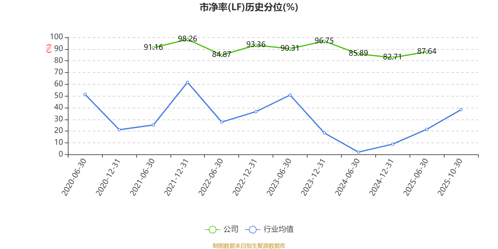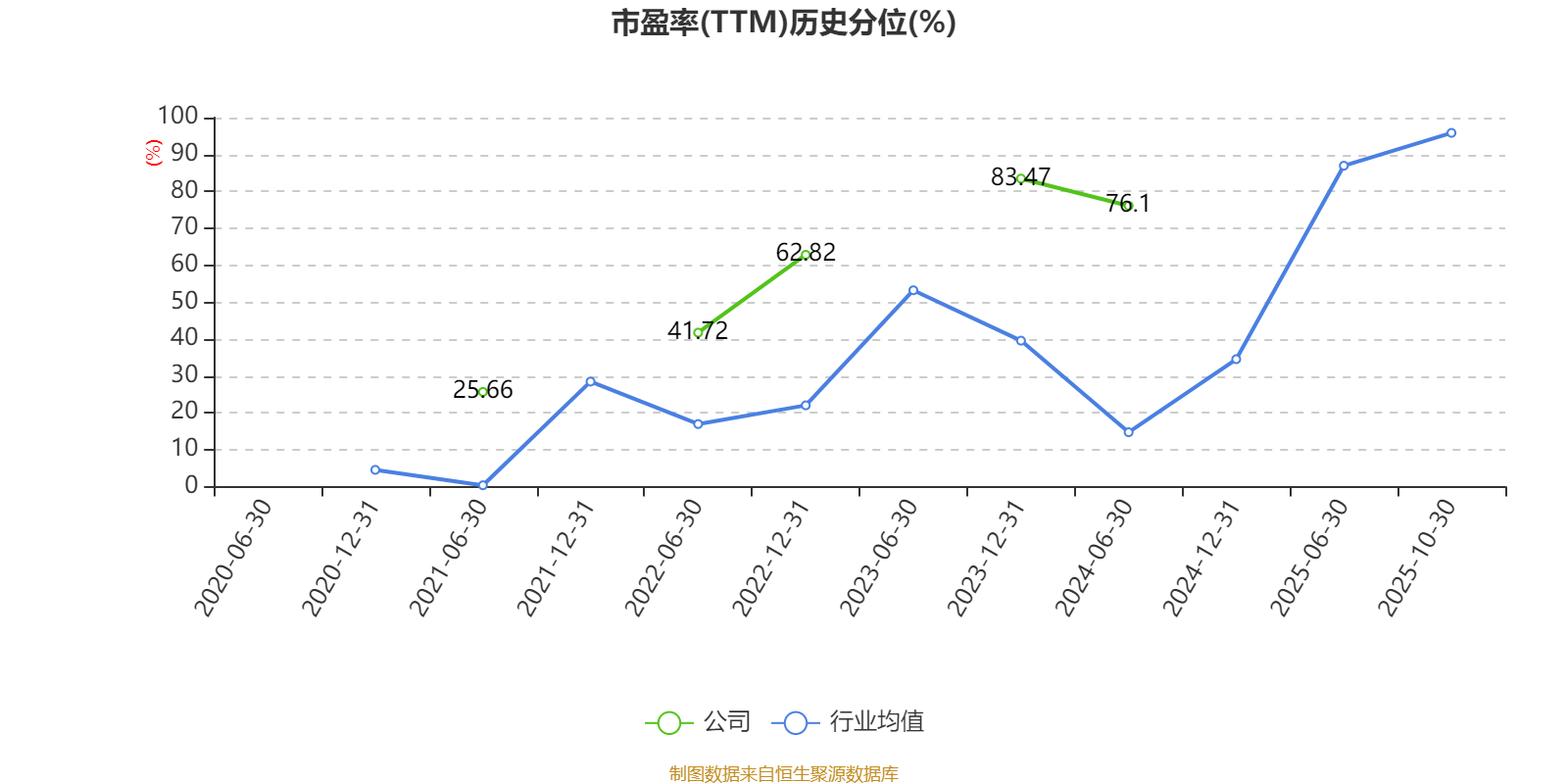 市盈率、市净率为负时,不显示当期分位数,会导致折线图中断。
