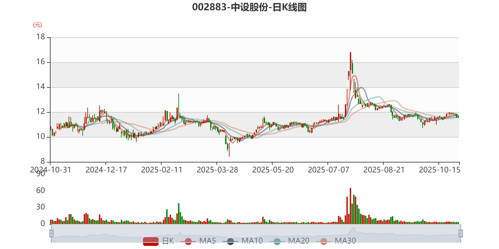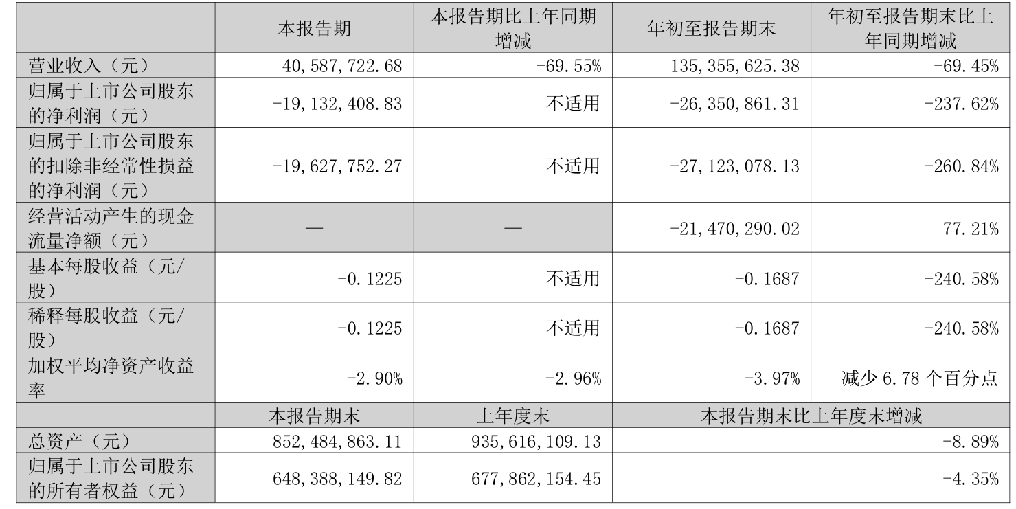 中证智能财讯中设股份(002883)10月31日披露2025年第三季度报告。前三季度公司实现营业总收入1.35亿元,同比下降69.45%;归母净利润亏损2635.09万元,上年同期盈利1914.8万元;扣非净利润亏损2712.31万元,上年同期盈利1686.3万元;经营活动产生的现金流量净额为-2147.03万元,上年同期为-9422.07万元;报告期内,中设股份基本每股收益为-0.1687元,加权平均净资产收益率为-3.97%。
