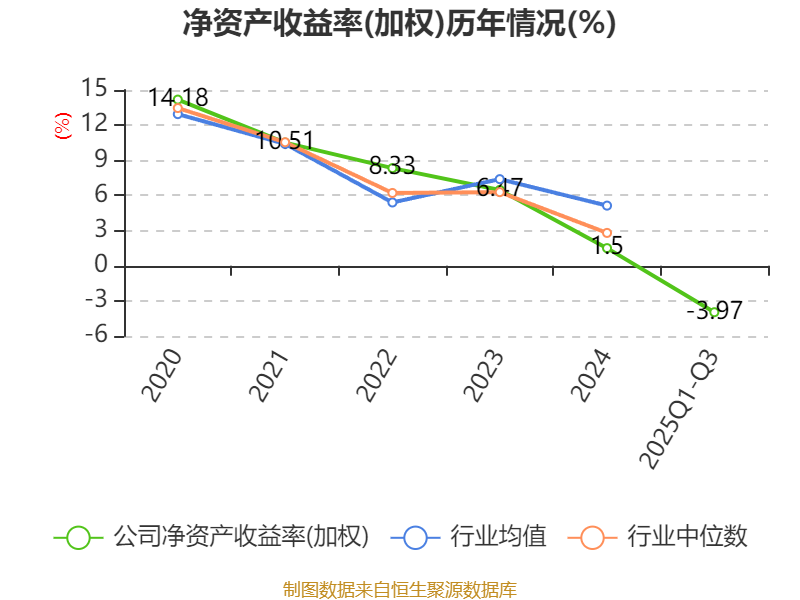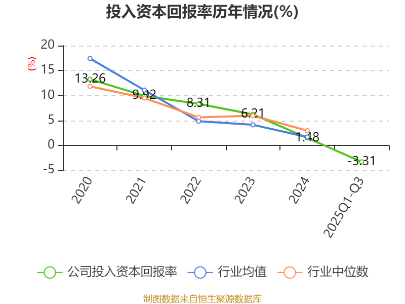 盈利能力方面, 2025年前三季度公司加权平均净资产收益率为-3.97%,同比下降6.78个百分点。公司2025年前三季度投入资本回报率为-3.31%,较上年同期下降5.71个百分点。