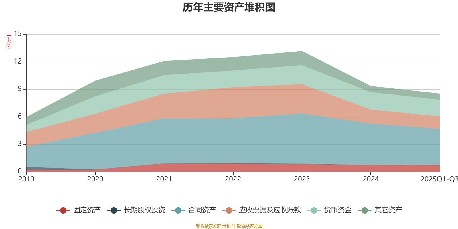 资产重大变化方面,截至2025年三季度末,公司合同资产较上年末减少11.88%,占公司总资产比重下降1.6个百分点;货币资金较上年末减少5.22%,占公司总资产比重上升0.82个百分点;固定资产较上年末减少4.18%,占公司总资产比重上升0.4个百分点;递延所得税资产较上年末减少0.33%,占公司总资产比重上升0.36个百分点。